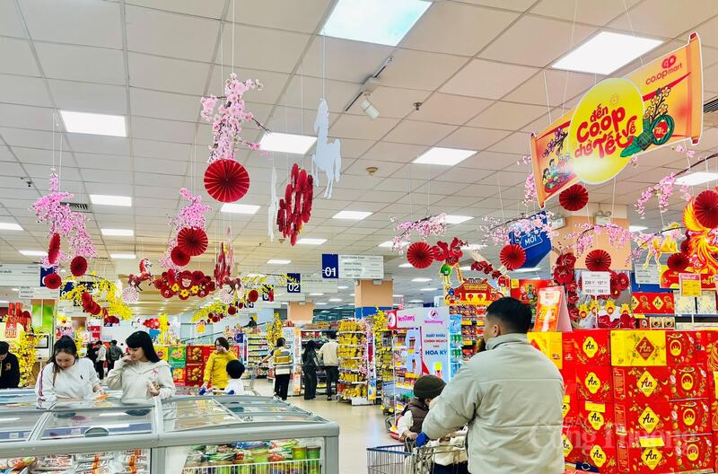 Hệ thống phân phối từ chợ truyền thống đến siêu thị, cửa hàng tiện lợi được tăng cường, góp phần bảo đảm hàng hóa lưu thông thông suốt, giá cả ổn định trước và trong Tết. Ảnh: Hiền Mai