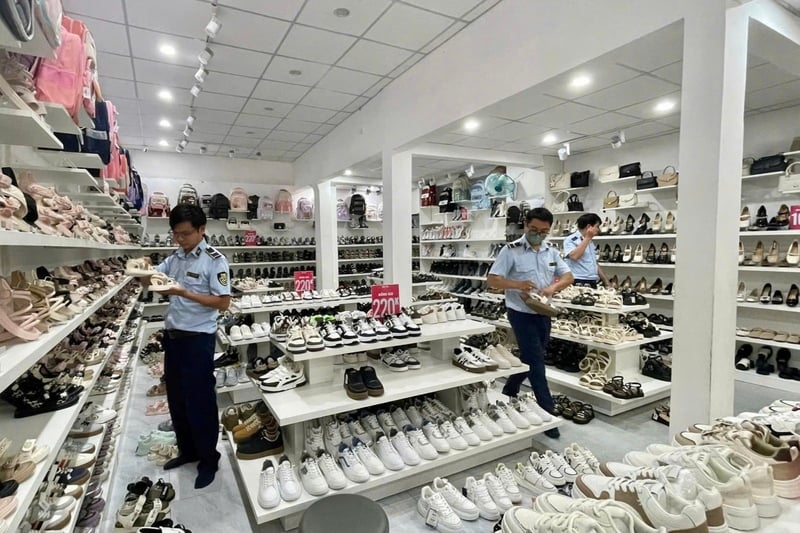 margin: 15px auto;" />Lực lượng quản lý thị trường kiểm tra một cửa hàng kinh doanh giày dép trên địa bàn. Ảnh: QLTT