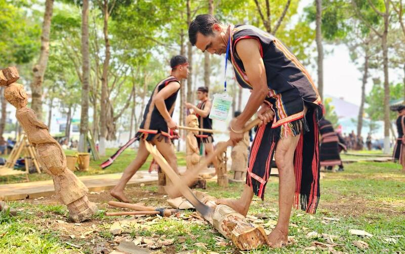 Không chỉ dừng ở biểu diễn, các khu vực trưng bày còn tạo cơ hội cho du khách trực tiếp trải nghiệm: Đánh cồng chiêng, múa xoang, đan lát, dệt thổ cẩm, nặn tò he, thư pháp, trà đạo, làm tranh Đông Hồ hay mặc thử trang phục truyền thống của các dân tộc Jrai, Bahnar, H’mông, Thái, Chăm, Mường… mỗi đoàn nghệ nhân được bố trí không gian riêng để vừa giới thiệu sản phẩm đặc trưng, vừa giao lưu, hướng dẫn du khách tham gia các hoạt động văn hóa truyền thống.