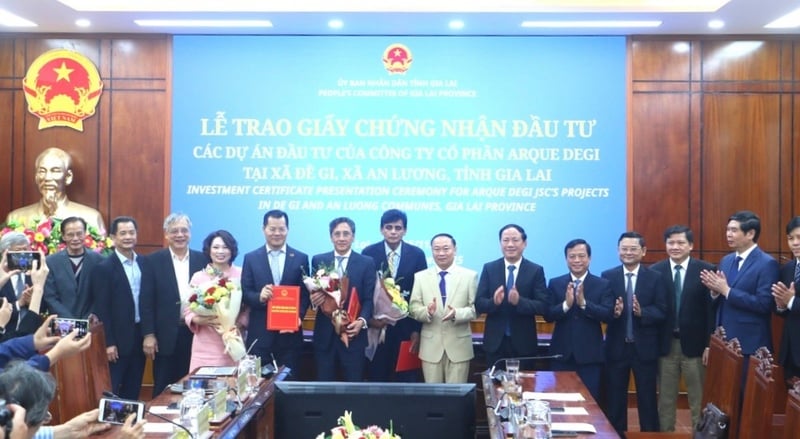 Tỉnh Gia Lai trao giấy chứng nhận đầu tư cho 3 dự án du lịch tại đầm Đề Gi do Công ty CP Arque Degi triển khai, tổng vốn hơn 8.500 tỷ đồng.
