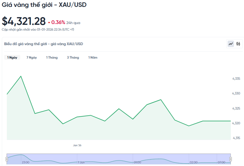 Giá vàng thế giới hôm nay 02/01/2026 và biểu đồ biến động giá vàng thế giới 24h qua