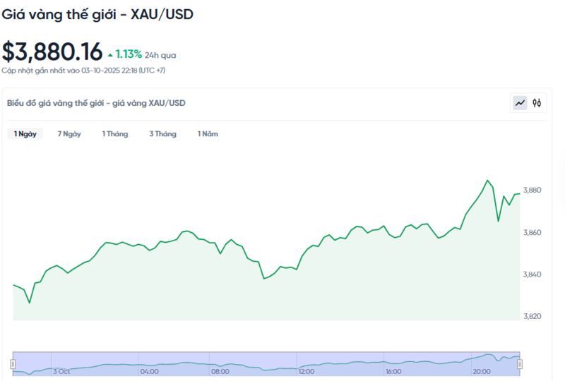 Giá vàng thế giới hôm nay 04/10/2025 và biểu đồ biến động giá vàng thế giới 24h qua