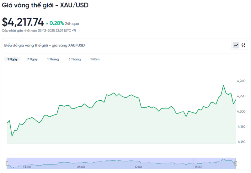 Giá vàng thế giới hôm nay 04/12/2025 và biểu đồ biến động giá vàng thế giới 24h qua