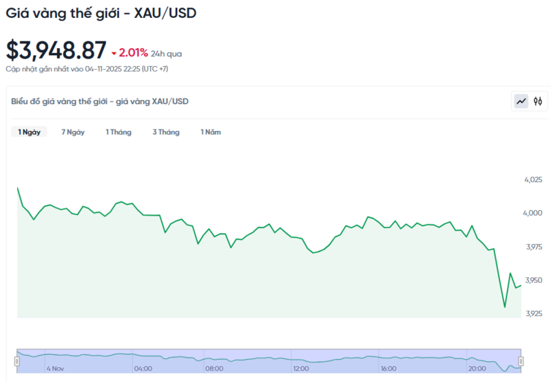 Giá vàng thế giới hôm nay 05/11/2025 và biểu đồ biến động giá vàng thế giới 24h qua