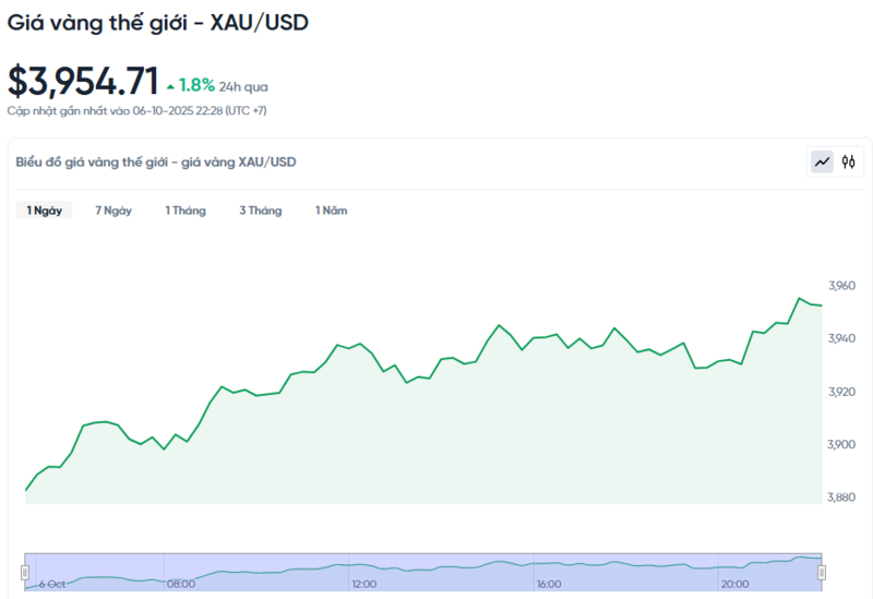 Giá vàng thế giới hôm nay 07/10/2025 và biểu đồ biến động giá vàng thế giới 24h qua