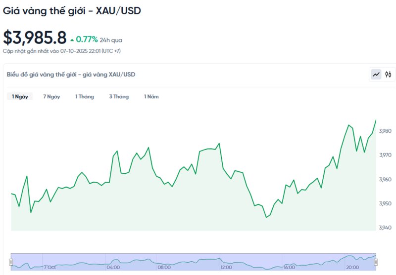 Giá vàng thế giới hôm nay 08/10/2025 và biểu đồ biến động giá vàng thế giới 24h qua