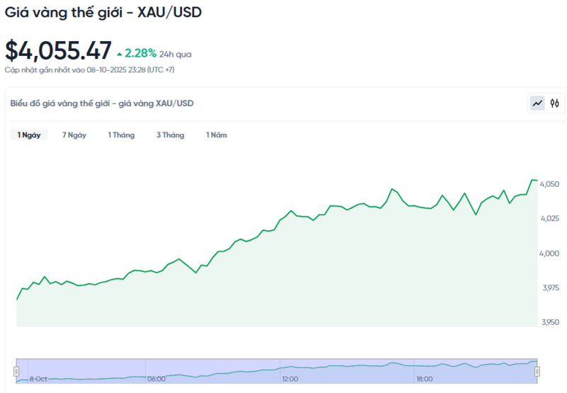 Giá vàng thế giới hôm nay 09/10/2025 và biểu đồ biến động giá vàng thế giới 24h qua