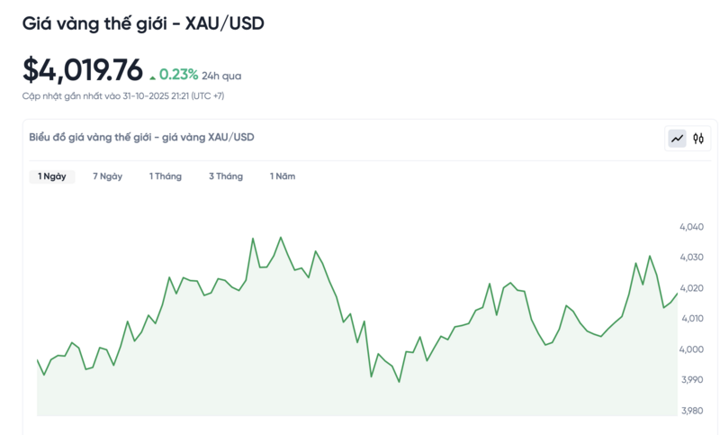 Giá vàng thế giới hôm nay 1/11/2025 và biểu đồ biến động giá vàng thế giới 24h qua
