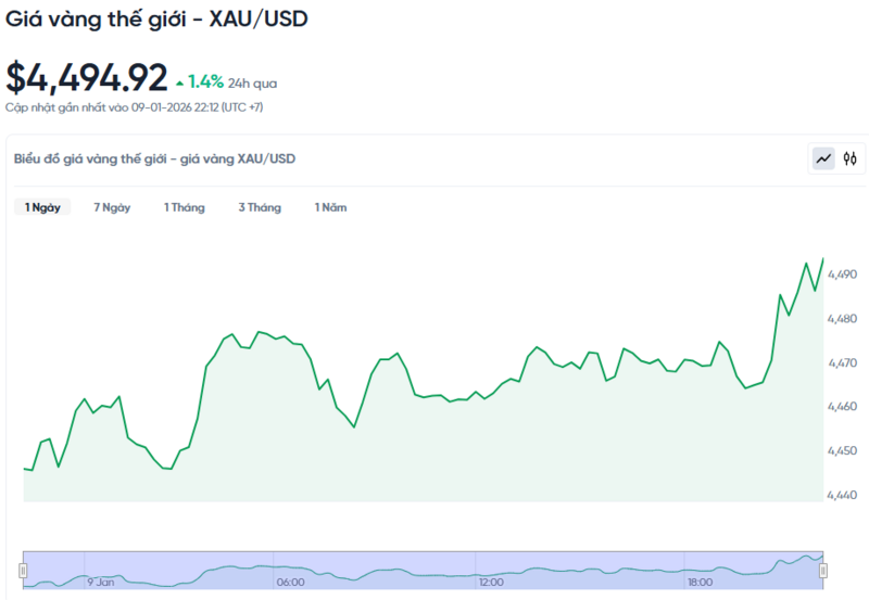 Giá vàng thế giới hôm nay 10/01/2026 và biểu đồ biến động giá vàng thế giới 24h qua