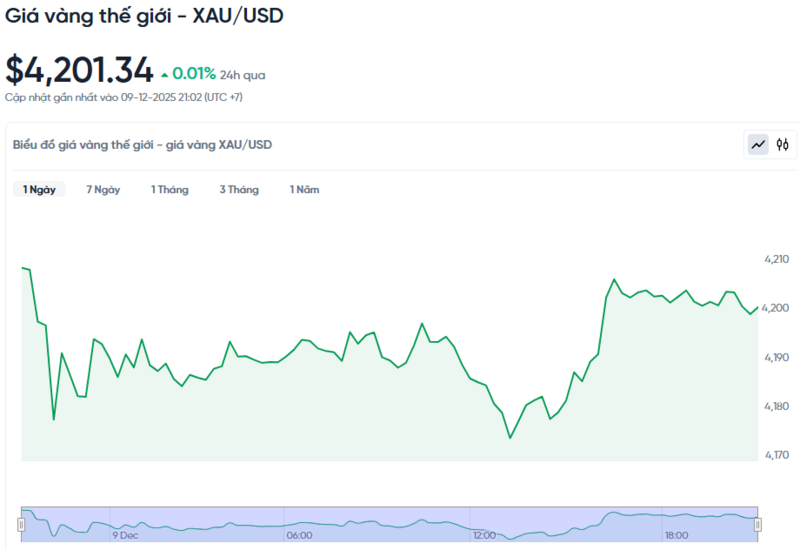 Giá vàng thế giới hôm nay 10/12/2025 và biểu đồ biến động giá vàng thế giới 24h qua