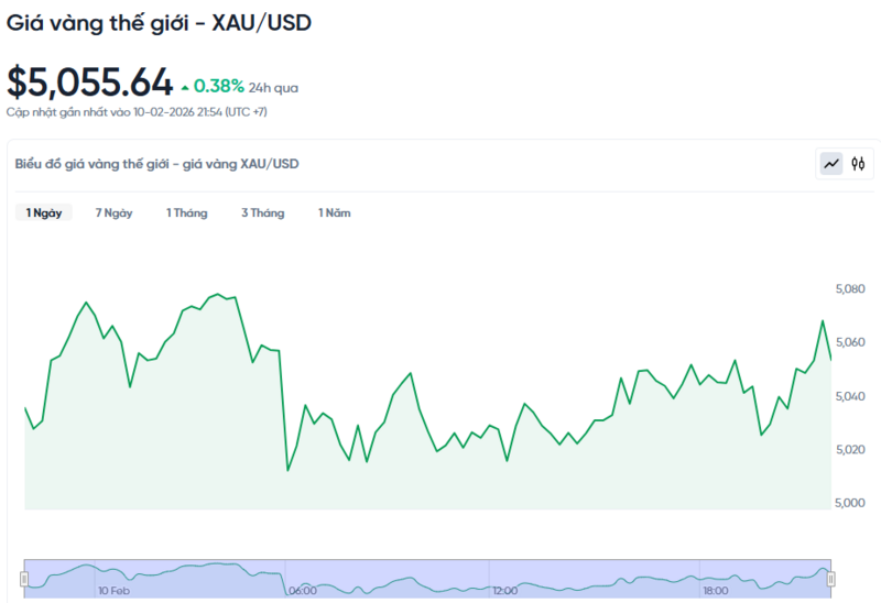 Giá vàng thế giới hôm nay 11/02/2026 và biểu đồ biến động giá vàng thế giới 24h qua