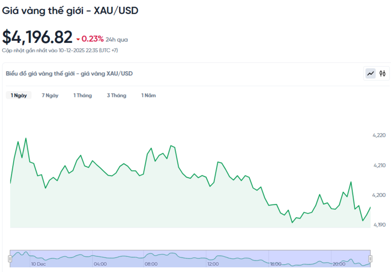 Giá vàng thế giới hôm nay 11/12/2025 và biểu đồ biến động giá vàng thế giới 24h qua