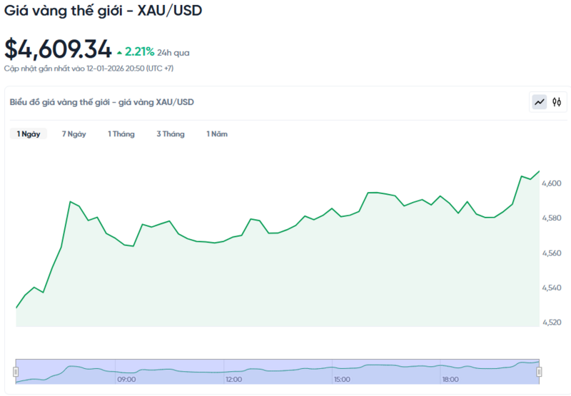 Giá vàng thế giới hôm nay 13/01/2026 và biểu đồ biến động giá vàng thế giới 24h qua