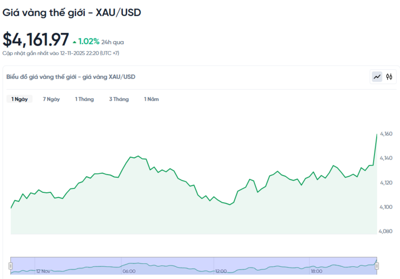 Giá vàng thế giới hôm nay 13/11/2025 và biểu đồ biến động giá vàng thế giới 24h qua
