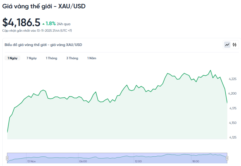 Giá vàng thế giới hôm nay 14/11/2025 và biểu đồ biến động giá vàng thế giới 24h qua