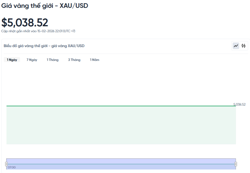 Giá vàng thế giới hôm nay 16/02/2026 và biểu đồ biến động giá vàng thế giới 24h qua