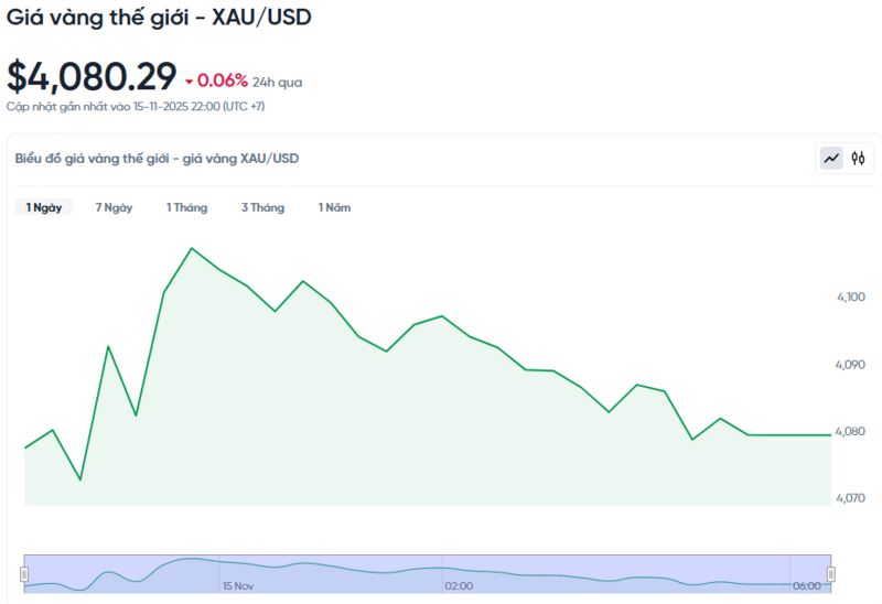 Giá vàng thế giới hôm nay 16/11/2025 và biểu đồ biến động giá vàng thế giới 24h qua