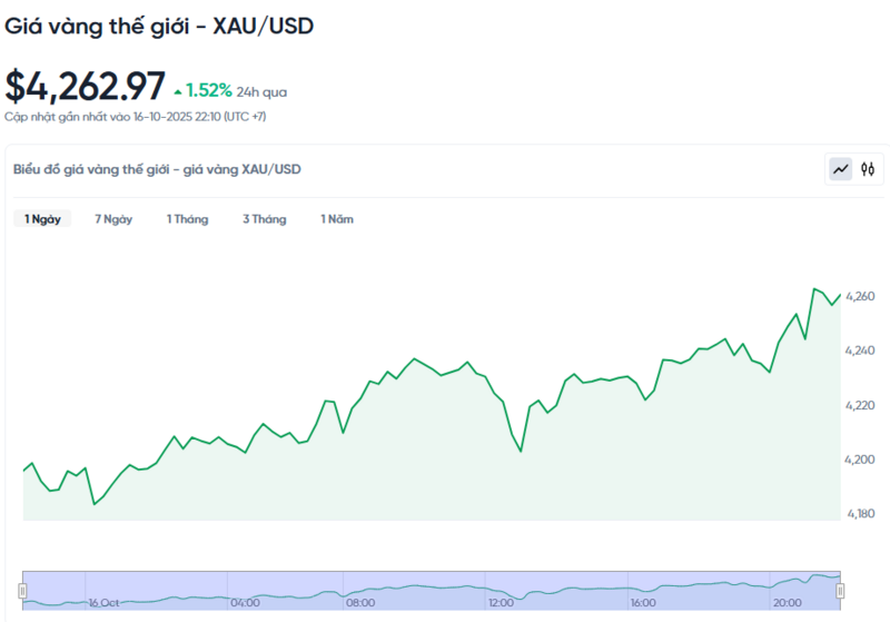 Giá vàng thế giới hôm nay 17/10/2025 và biểu đồ biến động giá vàng thế giới 24h qua