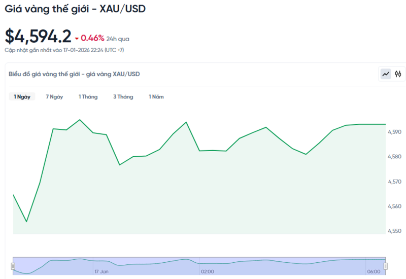 Giá vàng thế giới hôm nay 18/01/2026 và biểu đồ biến động giá vàng thế giới 24h qua