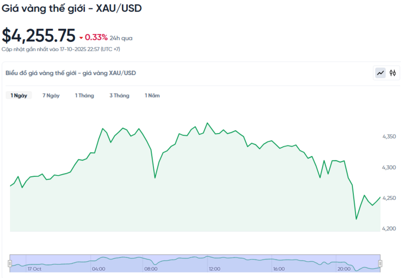Giá vàng thế giới hôm nay 18/10/2025 và biểu đồ biến động giá vàng thế giới 24h qua