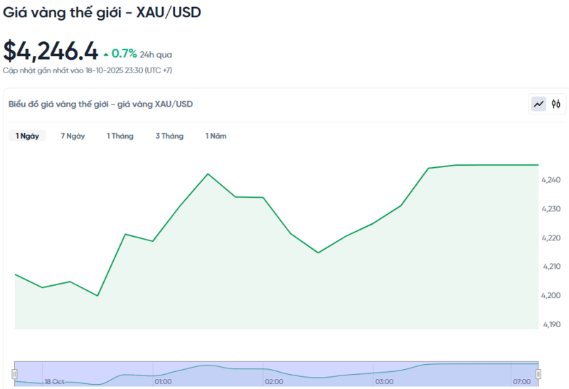 Giá vàng thế giới hôm nay 19/10/2025 và biểu đồ biến động giá vàng thế giới 24h qua