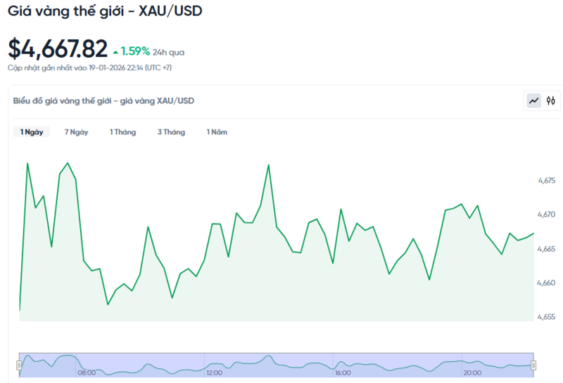 Giá vàng thế giới hôm nay 20/01/2026 và biểu đồ biến động giá vàng thế giới 24h qua