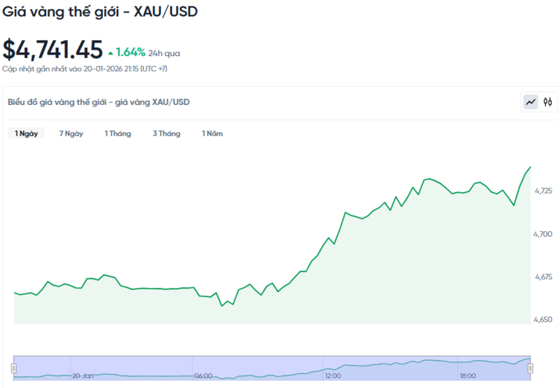 Giá vàng thế giới hôm nay 21/01/2026 và biểu đồ biến động giá vàng thế giới 24h qua