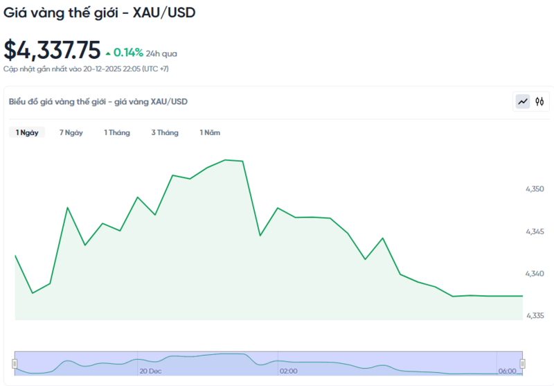 Giá vàng thế giới hôm nay 21/12/2025 và biểu đồ biến động giá vàng thế giới 24h qua