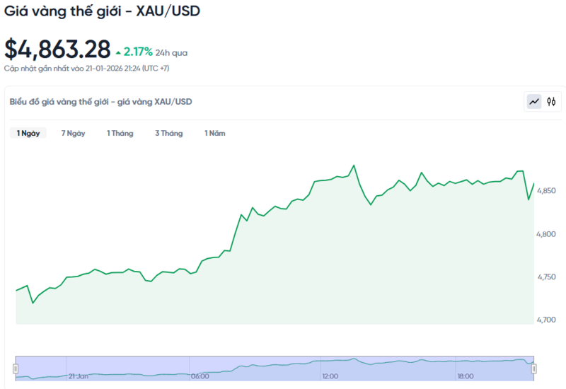 Giá vàng thế giới hôm nay 22/01/2026 và biểu đồ biến động giá vàng thế giới 24h qua
