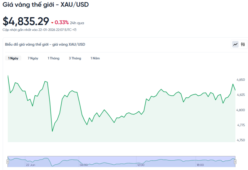 Giá vàng thế giới hôm nay 23/01/2026 và biểu đồ biến động giá vàng thế giới 24h qua