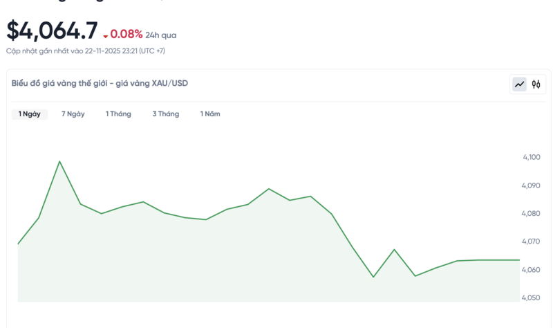 Giá vàng thế giới hôm nay 23/11/2025 và biểu đồ biến động giá vàng thế giới 24h qua