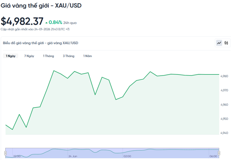 Giá vàng thế giới hôm nay 25/01/2026 và biểu đồ biến động giá vàng thế giới 24h qua
