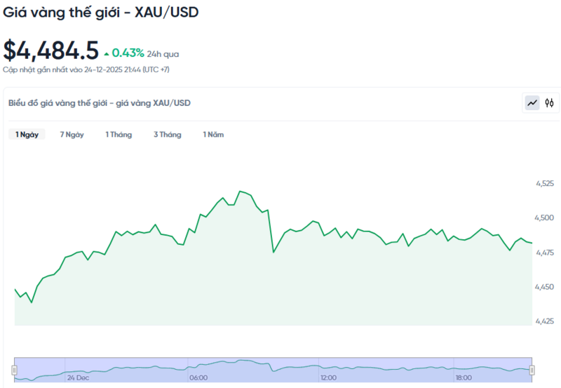 Giá vàng thế giới hôm nay 25/12/2025 và biểu đồ biến động giá vàng thế giới 24h qua
