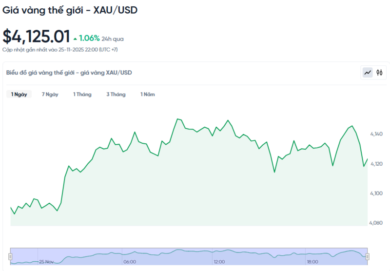Giá vàng thế giới hôm nay 26/11/2025 và biểu đồ biến động giá vàng thế giới 24h qua