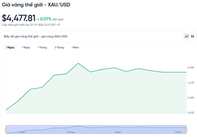 Giá vàng thế giới hôm nay 26/12/2025 và biểu đồ biến động giá vàng thế giới 24h qua
