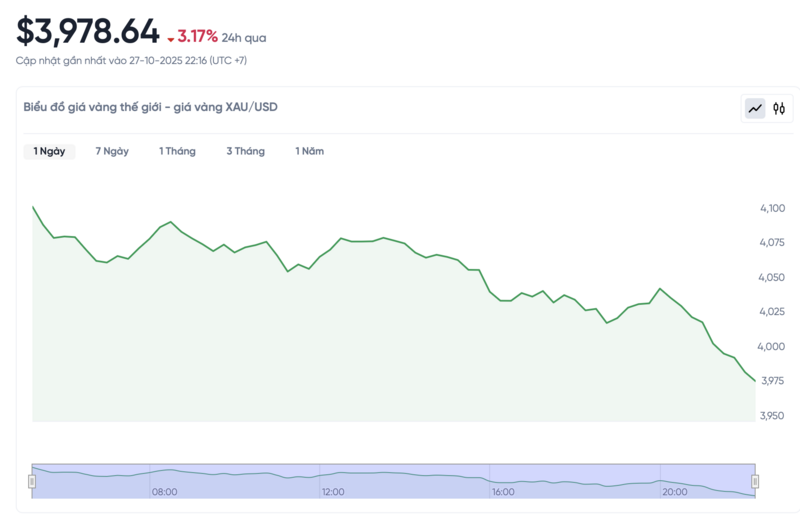 Giá vàng thế giới hôm nay 28/10/2025 và biểu đồ biến động giá vàng thế giới 24h qua