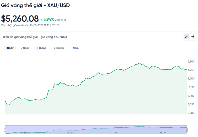 Giá vàng thế giới hôm nay 29/01/2026 và biểu đồ biến động giá vàng thế giới 24h qua
