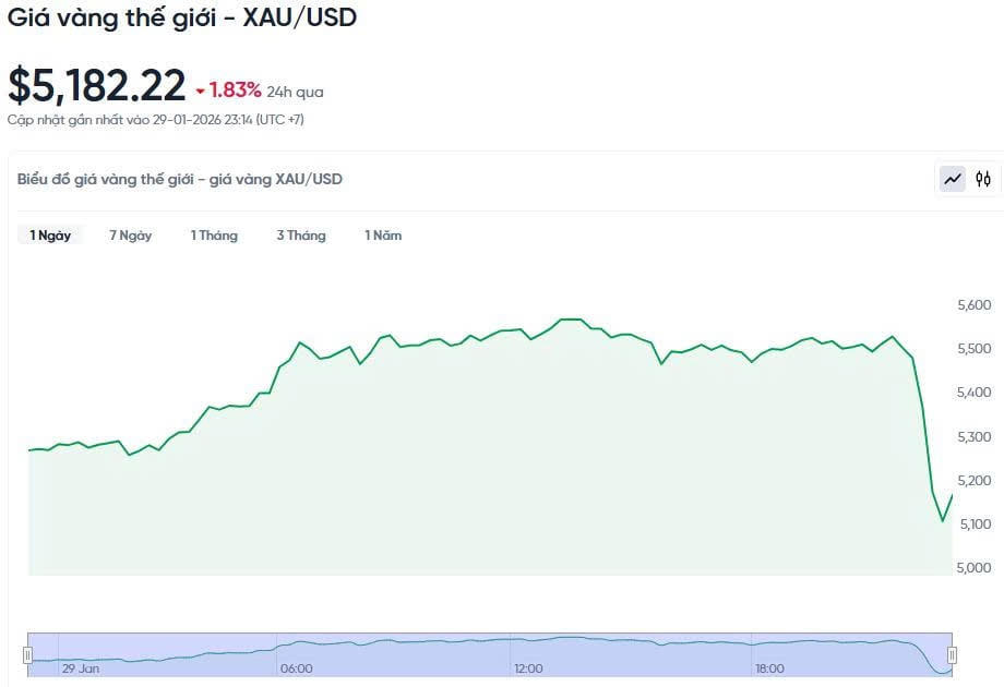 Giá vàng thế giới hôm nay 30/01/2026 và biểu đồ biến động giá vàng thế giới 24h qua
