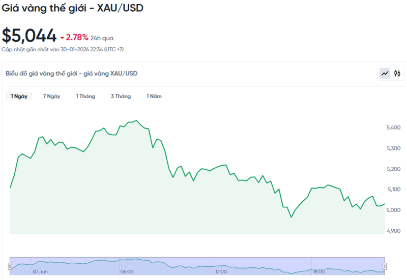 Giá vàng thế giới hôm nay 31/01/2026 và biểu đồ biến động giá vàng thế giới 24h qua