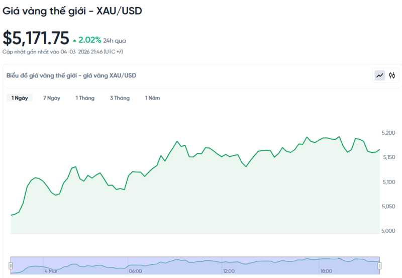 Giá vàng thế giới hôm nay 05/03/2026 và biểu đồ biến động giá vàng thế giới 24h qua