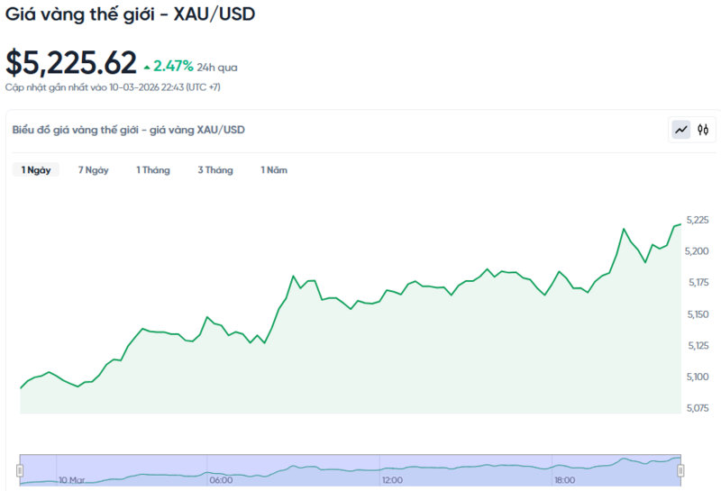 Giá vàng thế giới hôm nay 11/03/2026 và biểu đồ biến động giá vàng thế giới 24h qua