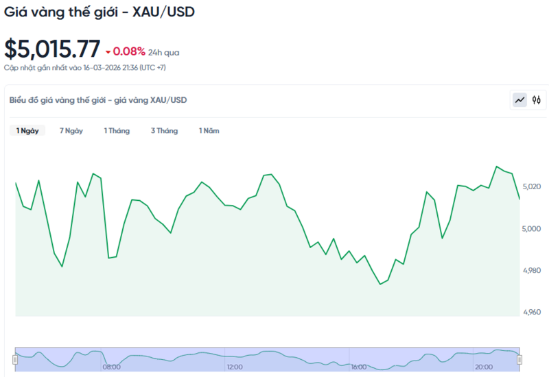Giá vàng thế giới hôm nay 17/03/2026 và biểu đồ biến động giá vàng thế giới 24h qua
