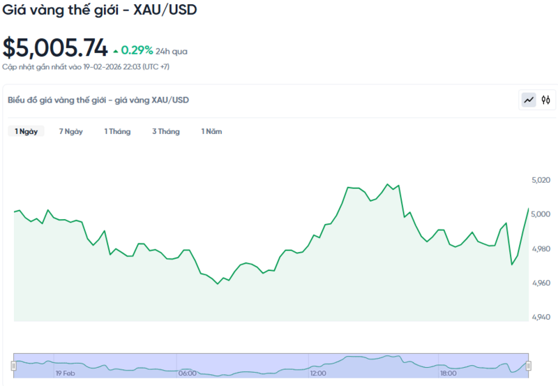 Giá vàng thế giới hôm nay 20/02/2026 và biểu đồ biến động giá vàng thế giới 24h qua