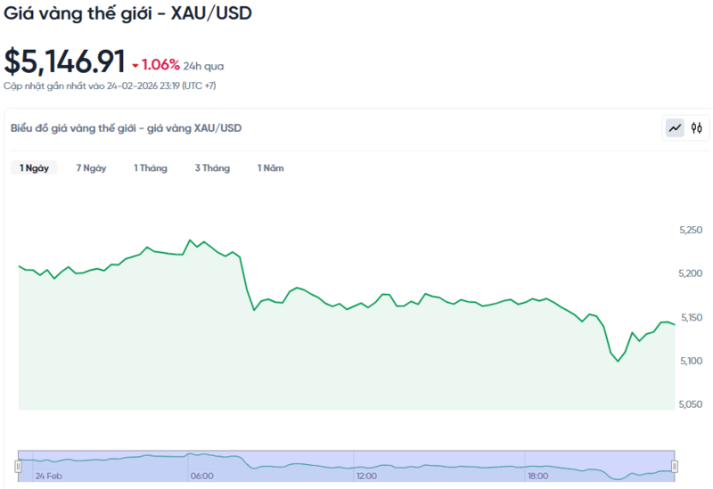 Giá vàng thế giới hôm nay 25/02/2026 và biểu đồ biến động giá vàng thế giới 24h qua
