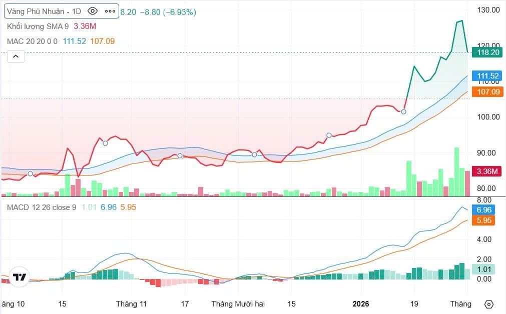 Diễn biến giảm mạnh của PNJ diễn ra sau giai đoạn cổ phiếu này tăng nóng. Trong khoảng một tháng trước phiên 2/2, thị giá PNJ đã tăng xấp xỉ 30%, từng chạm vùng 127.000 đồng/cổ phiếu và trở thành một trong những điểm sáng của nhóm bán lẻ cũng như nhóm cổ phiếu liên quan đến vàng – trang sức.