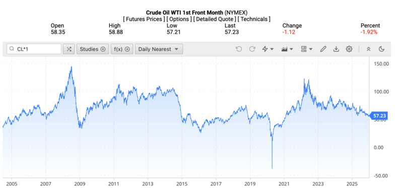 Giá dầu WTI trên thị trường thế giới rạng sáng ngày 27/12/2025 (theo giờ Việt Nam). Nguồn: Oilprice.
