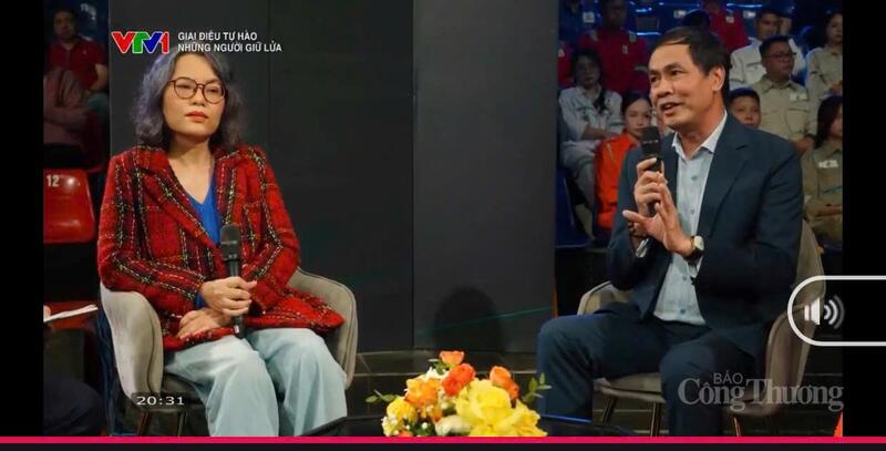 Nhà thơ - nhà báo Hữu Việt và nhà báo Đỗ Thu Hà chia sẻ trong chương trình. Ảnh: Hoa Quỳnh