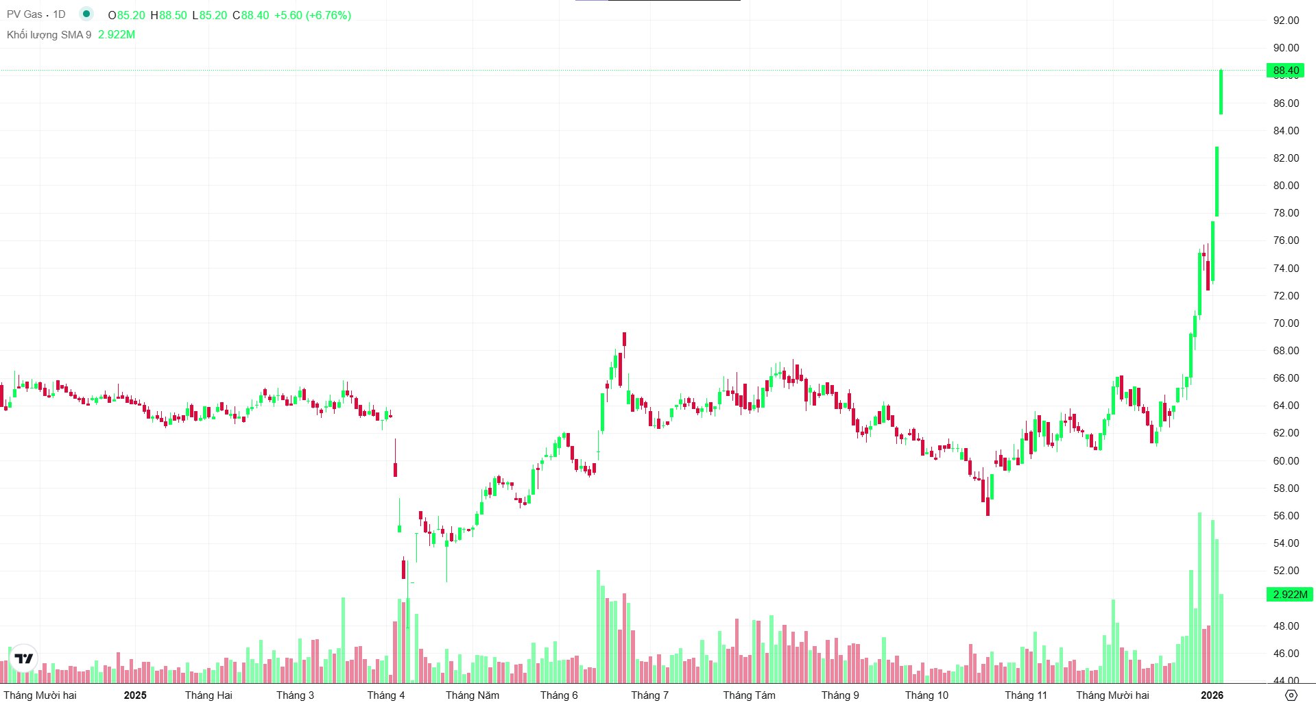 Việc Tổng Công ty Khí Việt Nam – CTCP (PV GAS, HOSE GAS) công bố chưa đáp ứng điều kiện công ty đại chúng theo Luật Chứng khoán sửa đổi đã nhanh chóng thu hút sự chú ý của thị trường. Tuy nhiên, diễn biến đáng chú ý hơn lại nằm ở phản ứng của giá cổ phiếu khi mã GAS đã liên tiếp có ba phiên tăng trần, đưa thị giá lên 88.500 đồng/cổ phiếu vào phiên sáng ngày 7/1, bất chấp thông tin mang màu sắc rủi ro pháp lý.