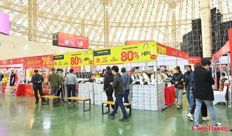 Nhiều gian hàng của các thương hiệu lớn đồng loạt triển khai chương trình khuyến mại sâu, với mức giảm giá phổ biến từ 30% đến 80%, thu hút sự quan tâm của người tiêu dùng.