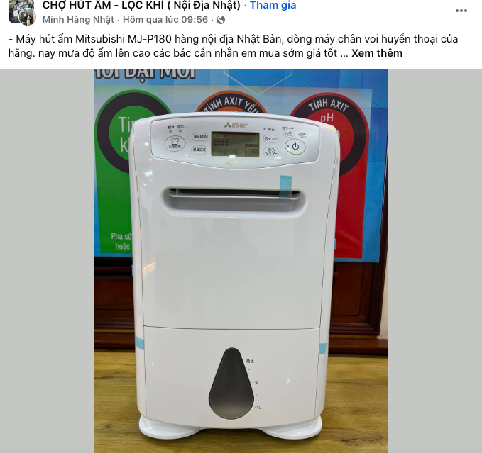 Trên chợ mạng, một số tài khoản Facebook cũng tăng cường chào bán một số dòng hút ẩm qua sử dụng, hàng nội địa Nhật với giá 5-8 triệu đồng. Theo giới thiệu, các sản phẩm này có đủ công suất dùng cho phòng diện tích 10-50 mét vuông tùy theo nhu cầu của khách hàng.